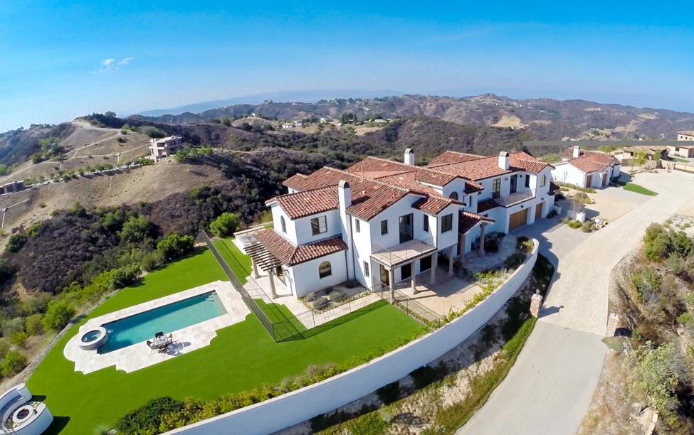 Cradled in one of the most spectacular settings one can imagine, this new custom Mediterranean estate features panoramic views of city lights, graceful mountains and the deep-blue ocean. Every luxury is offered throughout the main house and guest house totaling 6654 sf with a total of 6 en-suite bedrooms and 6.50 baths (1 bedroom suite is located downstairs). Gourmet kitchen boasts large island, Madre Perla Quartzite counters, freestanding Wolf Range/Ovens and Sub-Zero refrigerator and 2 dishwashers. Beautiful finishes throughout include richly hued hardwood flooring, stone and paver floors, solid Alder doors, energy efficient dual pane windows, Nest temperature control and water purification system. Gated sparkling pebble sheen pool, spa with waterfall, large barbecue center and firepit with built-in conversation area are all features of the beautiful backyard. 3 car garage plus 2 car guest house garage and additional parking are found on grounds. Revel in country serenity and privacy but still be just 6 minutes from Calabasas High School and 14 minutes from beach!